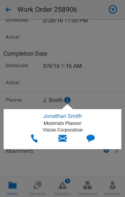 - View work order and operations detail along with their associated attachments