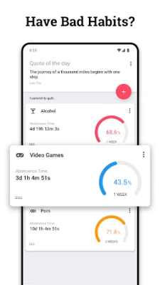 If you’re struggling with self-harming habits or addictions - Quitzilla is a habit tracker that can help you get your life back on track. It’s a habit-breaker app that aims to help users overcome self-harming or addictive behavior, stop bad habits, and practicing NoFap for better self-control.