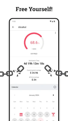 - sobriety counter in hours, days, and money