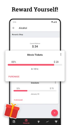 The rewards feature is actually a calculation of the money saved. For example, if you’ve spent $100 on gambling weekly, and you haven’t gambled for a week, then those $100 is your weekly reward. Users can also manually add rewards for themselves. This serves as great motivation to quit alcohol, cigarettes, junk food, or anything similar that costs us money and is harmful to our body and health.
