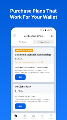 Unlimited membership or a virtual-only pass? Quickly compare studio plans and prices that work for your wallet and wellness goals—and securely make purchases and payments all in one place.